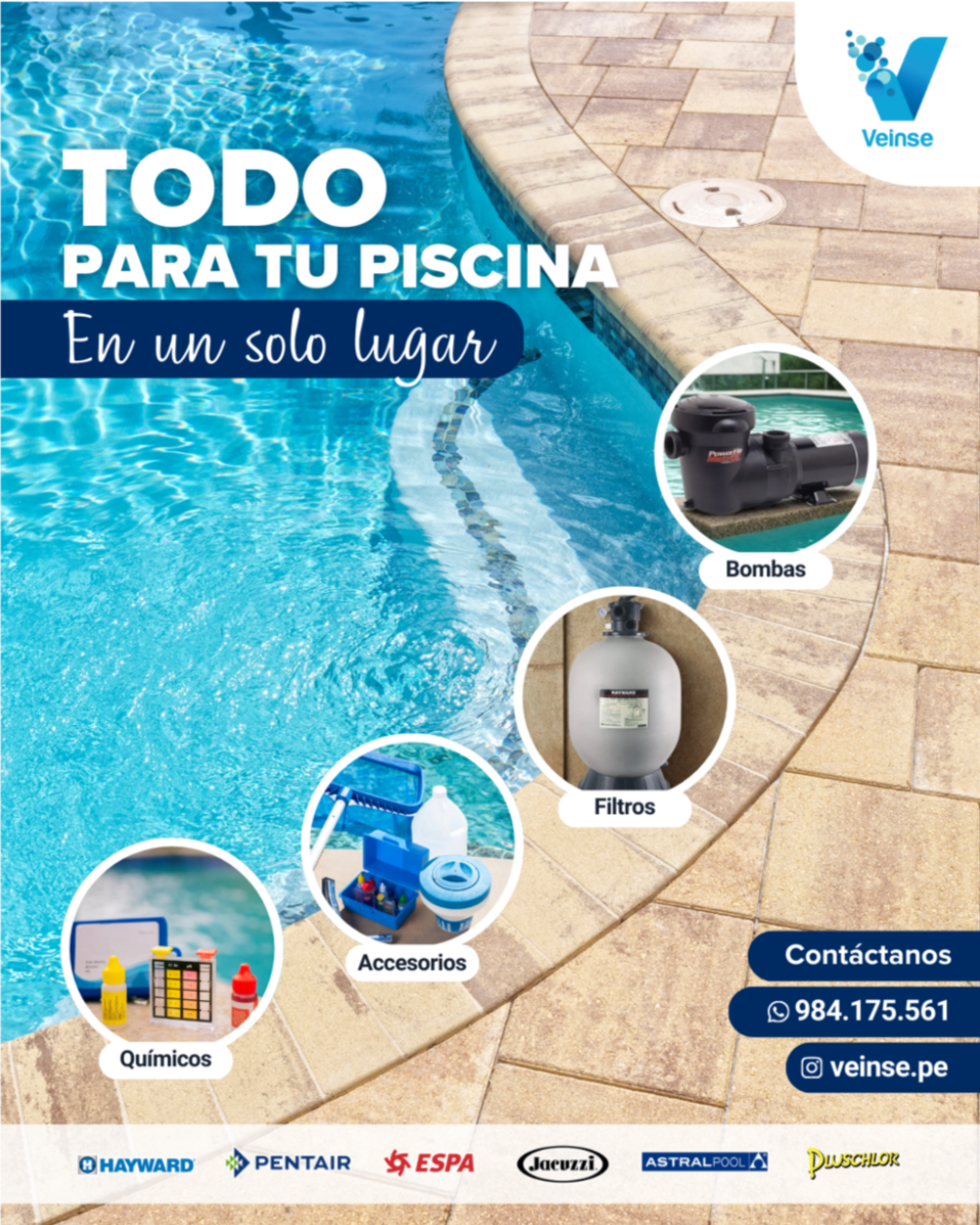 Bombas, filtros, calentadores, cloración, quÃmicos y muchos equipos más de marcas lÃderes. En Veinse te asesoramos para elegir el equipo correcto y lo dejamos funcionando. Entrega rápida en Lima y envÃos a provincias, con soporte técnico y repuestos.